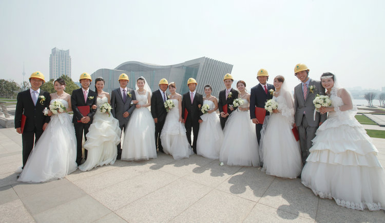 2013年3月8日,由武漢鐘鑫市政建設(shè)工程有限公司主辦的“EVERGREEN——幸福常青”大型集體婚禮在漢陽區(qū)琴臺(tái)食上酒店盛大舉行,八對新人齊聚于此,在300名親朋好友及領(lǐng)導(dǎo)同事的祝福聲中,攜手步入婚姻的殿堂?;槎Y中還出現(xiàn)了充分展現(xiàn)市政行業(yè)特點(diǎn)的新郎佩戴安全帽環(huán)節(jié)。