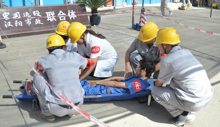 6月16日下午,鐘鑫公司安全演練比賽在玉龍路地鐵項(xiàng)目部舉行。三支來自地鐵項(xiàng)目部的隊(duì)伍參加了此次比賽。鐘鑫公司經(jīng)理王智高、書記王繁及集團(tuán)公司安全文明辦羅艷明部長觀看了比賽。來自漢口北項(xiàng)目部、三號線六標(biāo)項(xiàng)目部和玉龍路地鐵項(xiàng)目部的三支參賽隊(duì)伍分別演練了工人高空跌傷、負(fù)高空墜落物體打擊、盾構(gòu)施工中機(jī)械傷害等科目。