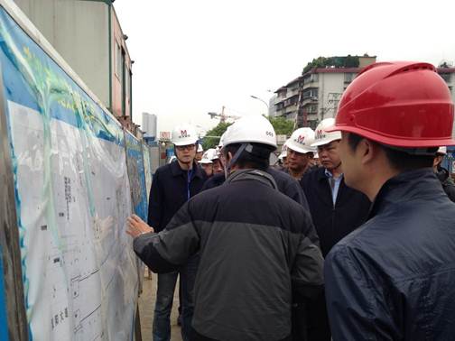 2014年4月16日9點30分,地鐵集團董事長劉玉華一行來到武漢市軌道交通四號線二期八標(biāo)工地進行了視察工作,我公司王總經(jīng)理陪同地鐵領(lǐng)導(dǎo)視察了工地,就工地的施工進度、工地的安全文明、出入口的工期問題進行了詳細的解答。地鐵領(lǐng)導(dǎo)對漢陽市政進行了高度的評價,他說到八標(biāo)作為二期的重要地鐵車站,其車站長度長,施工工藝復(fù)雜,在這兩年多的時間里漢陽市政不但沒有退縮,還出色的完成了車站主體結(jié)構(gòu)的施工任務(wù)。同時,他鼓勵我們要不斷開拓創(chuàng)新,做好出入口施工,配合其他單位,共同努力,安全生產(chǎn)文明施工,確保四號線二期今年的順利通車。