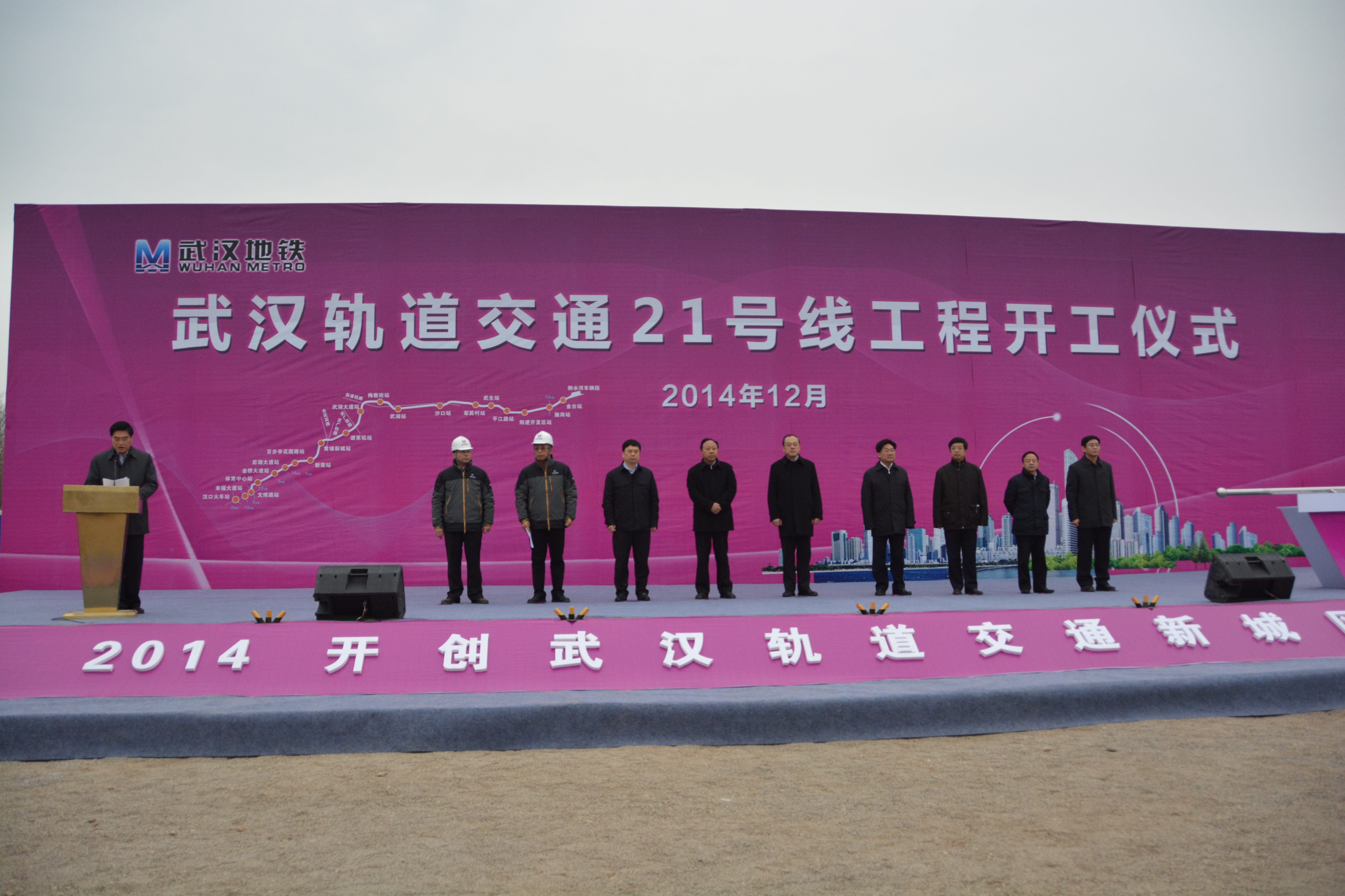 2014年12月27日上午,武漢軌道交通21號(hào)線在新洲區(qū)施崗正式開(kāi)工,省委常委、市委書(shū)記阮成發(fā),市政協(xié)主席吳超,常務(wù)副市長(zhǎng)賈耀斌、新洲區(qū)委書(shū)記胡亞波等領(lǐng)導(dǎo)出席開(kāi)工儀式,參加開(kāi)工儀式的還有我公司總經(jīng)理王智高及部分職工。