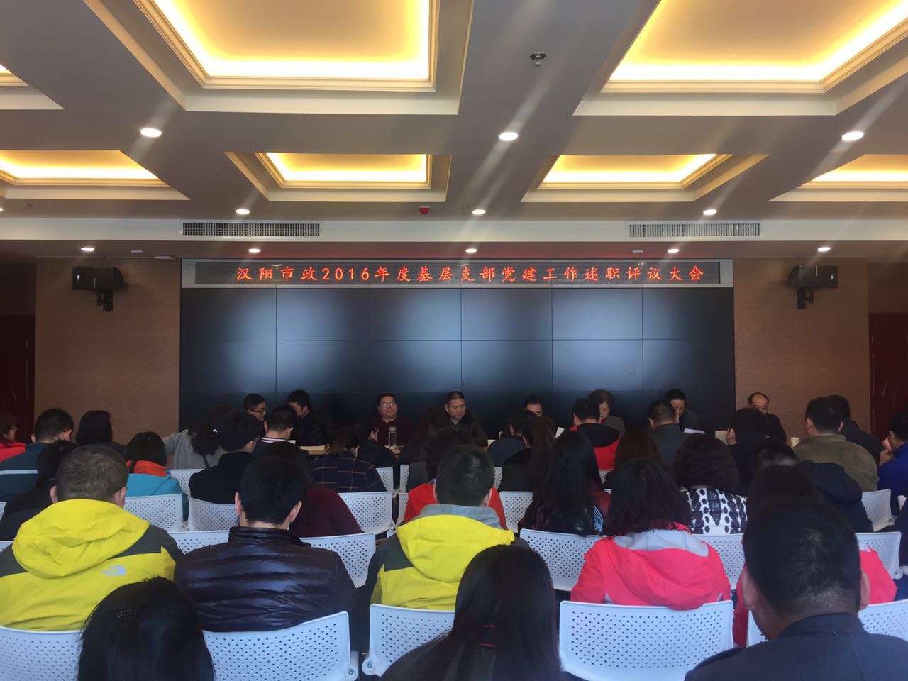 2013年3月14日下午,漢陽市政總公司2016年度基層支部黨建工作述職評議大會在總公司大會議室召開??偣绢I(lǐng)導(dǎo)及各分公司領(lǐng)導(dǎo)參加本次會議。鐘鑫公司黨支部書記方紫微在會上作述職報告。