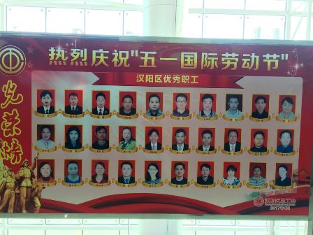 (圖為漢陽區(qū)勞動表彰榮譽(yù)墻,第一排左起第四位為付曉陽同志)