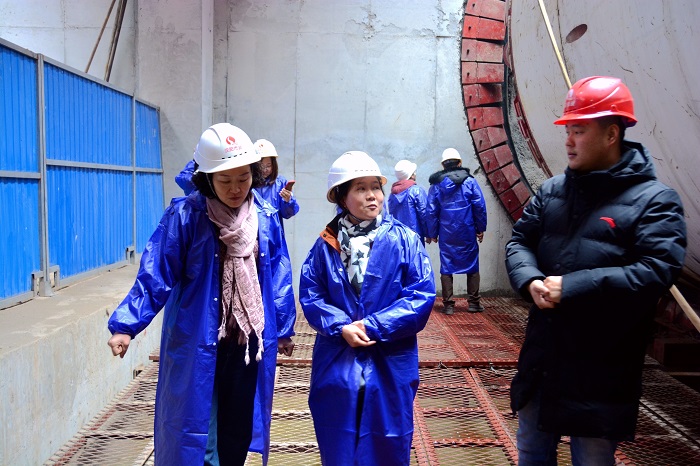 隨后,張平帶領郭艷一行來到車站負一層,張平對5號線第七標段施工過程中的技術重難點進行了深入的講解,并帶領大家參觀了建設十一路站車站結(jié)構(gòu)成品保護和工程BIM建設情況,觀看了本工程建設全程的BIM技術運用動畫視頻。在車站負二層,郭艷一行參觀了漢陽市政1號盾構(gòu)機,張平就地鐵隧道盾構(gòu)機施工工藝進行了言簡意賅的講解,郭艷對漢陽市政盾構(gòu)工藝和設備表示了贊揚。