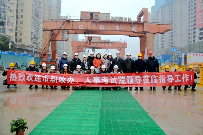 1月16日下午14:30,武漢市人事考試院副院長郭艷、朱江等一行來到武漢市軌道交通5號線工程第七標段進行現(xiàn)場調(diào)研,漢陽市政集團公司黨委副書記陳穎、副總經(jīng)理邢榮斌等人陪同調(diào)研。