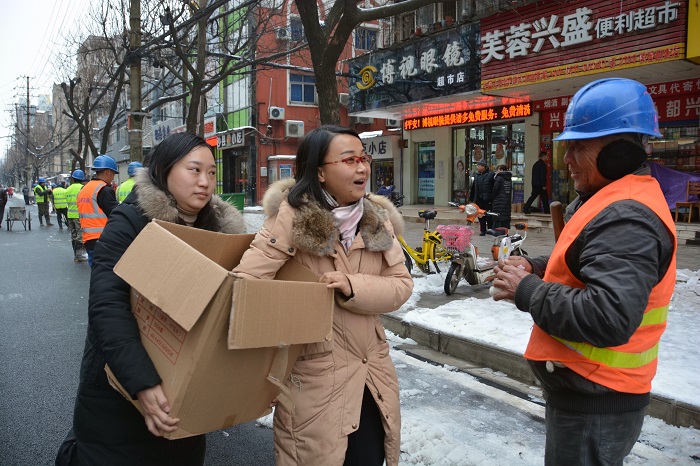 指針來到下午14時,鐘鑫市政“鐵軍”在公司領(lǐng)導(dǎo)的帶領(lǐng)下,搶險隊伍馬不停蹄地來到了國博大道??碧酵戡F(xiàn)場之后立即做出工作部署,將全體人員和機(jī)械按照路段劃分為三個路段進(jìn)行除雪破冰。下午的國博大道,寒風(fēng)凜冽,氣溫格外寒冷。好在鐘鑫公司的女同志們不顧嚴(yán)寒,精心準(zhǔn)備了充足的姜湯和熱騰騰的包子,為饑寒交迫的搶險隊伍送來了熱飲和食物,姜湯驅(qū)除寒氣,食物更暖人心,隊伍在下午18時順利完成了清掃任務(wù)。期間,方紫微帶領(lǐng)部分人員火速馳援馬滄湖路進(jìn)行路面清掃,擼起袖子和大家伙兒一起干!清掃完畢的馬滄湖路煥然一新。