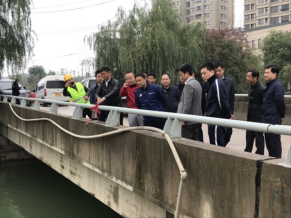 胡洪春常委一行就工程施工的進(jìn)展情況、施工難點(diǎn)、安全教育進(jìn)行了詳細(xì)的詢問,同時強(qiáng)調(diào)了本工程對于漢陽區(qū)水體提質(zhì)以及全市迎軍運(yùn)會環(huán)境綜合整治的意義。他要求項(xiàng)目不斷完善水體整治配套設(shè)施建設(shè),時刻不放松地抓好工程質(zhì)量與安全管理,認(rèn)真落實(shí)安全生產(chǎn)責(zé)任制,切實(shí)增強(qiáng)工作的責(zé)任感,為2019軍運(yùn)會的開展提供良好的環(huán)境。漢陽區(qū)水務(wù)局局長許才勇現(xiàn)場就市區(qū)領(lǐng)導(dǎo)關(guān)心的問題一一做了解答。