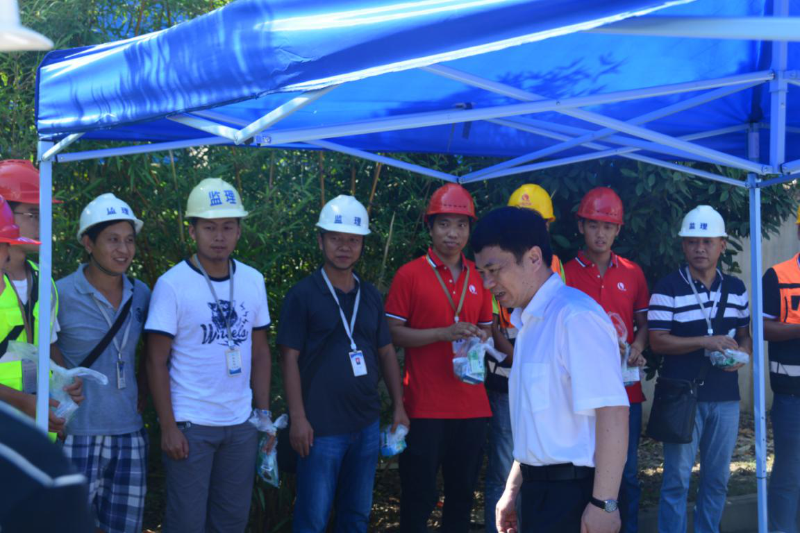 馬澤江一行來到鸚鵡大道建港路段和在場(chǎng)的一線施工人員親切交流,詢問他們工作的近況,將區(qū)總工會(huì)組織的防暑降溫物資送到大家手中,并向這些為人民造福的城市建設(shè)者表達(dá)了感謝“大家辛苦了!”。馬澤江充分肯定了一線施工人員不畏炎熱、辛勤付出的奉獻(xiàn)精神,叮囑他們?cè)谘谉崽鞖馇闆r下,要做好自身保護(hù),嚴(yán)防中暑,確保自身健康。馬澤江也提出了要做好防暑降溫工作的要求,強(qiáng)調(diào)要保證一線施工人員的健康安全,在確保工程高質(zhì)量發(fā)展的同時(shí)注重人文關(guān)懷。