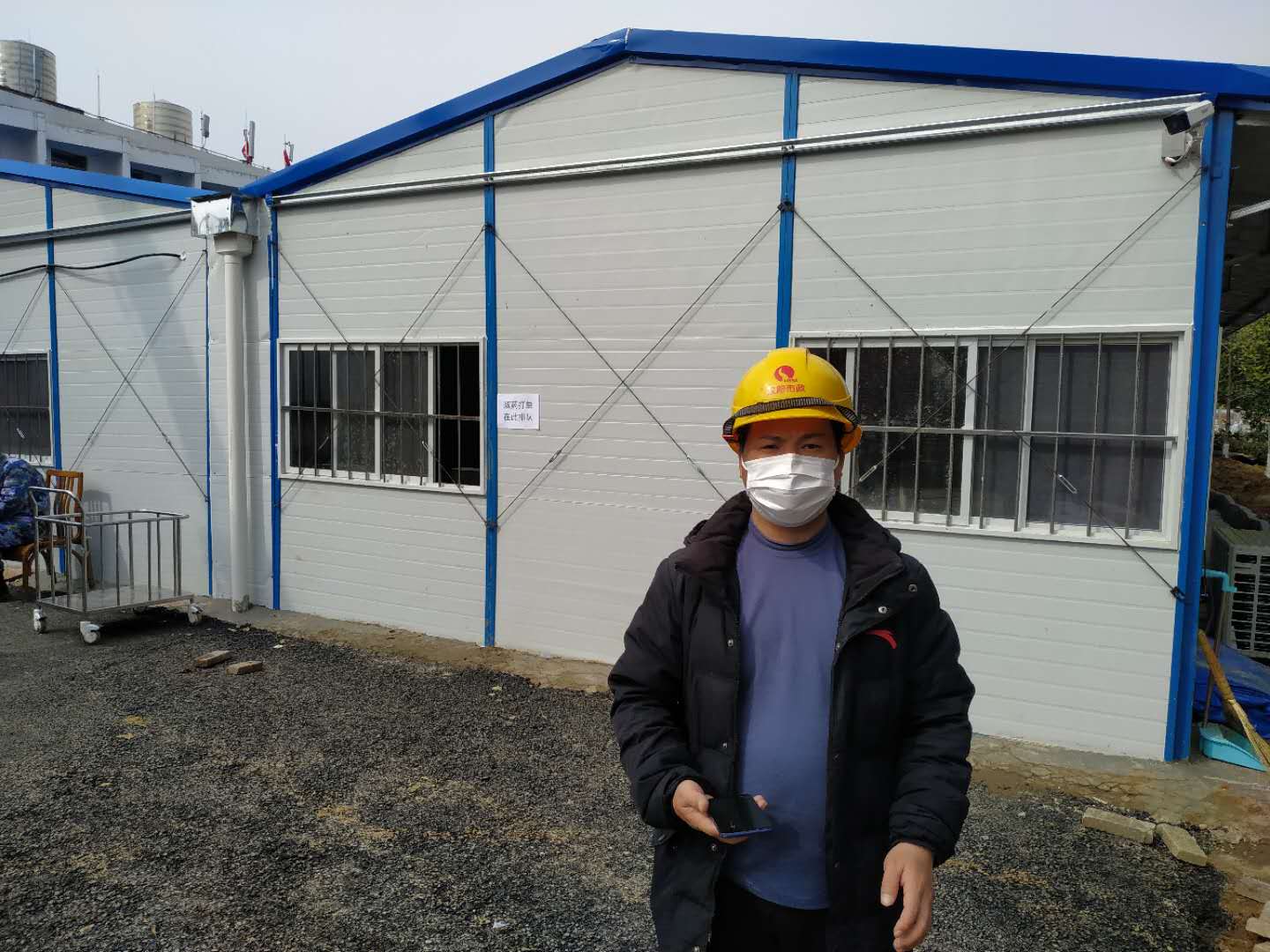 “最讓我難忘的就是在火神山,同伴們團(tuán)結(jié)一心、眾志成城,沒有情緒,不發(fā)牢騷,有什么任務(wù)都是第一時(shí)間馬上完成,有什么困難大家都積極幫忙?!痹谶@樣的氛圍中,周江雄感受到了集體擰成一捆繩的力量,他在現(xiàn)場負(fù)責(zé)施工以及聯(lián)系材料,每天只休四、五個(gè)小時(shí),起床的第一件事就是詢問工程進(jìn)度,然后進(jìn)駐施工現(xiàn)場。連續(xù)的奮戰(zhàn)使他十分疲憊,2月7日的一場雨打斷了他的抗“疫”征程,在雨中堅(jiān)持施工了一天的他,沒能撐住身體,感到身體發(fā)軟后無法再繼續(xù)奮戰(zhàn),回家休息后的他依然十分牽掛現(xiàn)場情況,當(dāng)身體慢慢好轉(zhuǎn),他又選擇繼續(xù)向前,然而新洲更加嚴(yán)格的管控措施阻擋了他前進(jìn)的腳步,“沒能繼續(xù)和同事肩并肩戰(zhàn)斗,我有些遺憾,但我的心一直在他們身邊,與他們戰(zhàn)斗,繼續(xù)加油,完成使命”,這是他沒能在同事身邊,發(fā)出的最振奮的鼓舞。