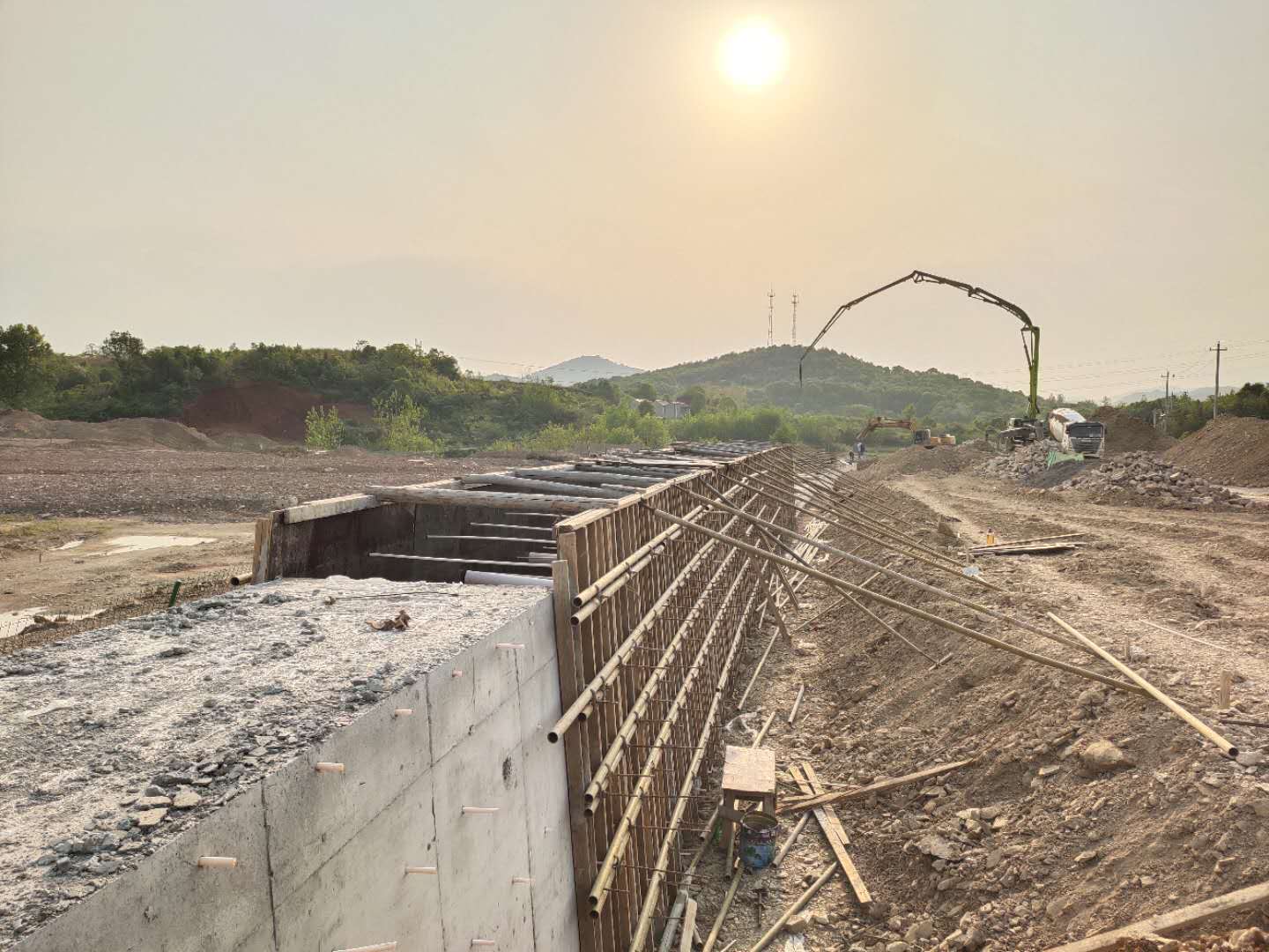 截止1月底,擋土墻施工完成300米,累計(jì)完成27%;雨水管道完成300米,累計(jì)完成27%;挖方完成6.6萬方,累計(jì)完成63.2%;填方完成4萬方,累計(jì)完成93.7%。受疫情影響,2個(gè)月處于停滯狀態(tài)。為保障項(xiàng)目安全有序復(fù)工,盡快把失去的工期“搶”回來,該項(xiàng)目部第一時(shí)間了解當(dāng)?shù)貜?fù)工復(fù)產(chǎn)要求以及尋求武漢政策支持,分期分批進(jìn)駐項(xiàng)目現(xiàn)場(chǎng)。嚴(yán)格按照疫情防控方案落實(shí)各項(xiàng)工作,全體員工租住當(dāng)?shù)鼐用衩穹浚粭潈蓪?,分別作為會(huì)議室和住宿,按照一人一間房安排住宿;項(xiàng)目現(xiàn)場(chǎng)通過微信群、宣傳標(biāo)語和現(xiàn)場(chǎng)展板等方式積極開展宣傳,施工現(xiàn)場(chǎng)采取了封閉式管理、實(shí)行全員戴口罩,提前儲(chǔ)備了口罩、護(hù)目鏡、消毒水、溫度計(jì)等防疫物資,保障項(xiàng)目現(xiàn)場(chǎng)防疫物資不中斷;每日為項(xiàng)目人員測(cè)量體溫、入場(chǎng)檢測(cè)實(shí)名登記、進(jìn)入項(xiàng)目車輛及人員定時(shí)消毒和分批就餐等手段切實(shí)做好施工期間防疫工作。確保了防疫生產(chǎn)“兩不誤”。整個(gè)項(xiàng)目部團(tuán)結(jié)一心,鼓足干勁,奔著共同目標(biāo)毫不松懈,挑燈夜戰(zhàn)趕進(jìn)度,爭(zhēng)分奪秒搶工期。通過加大人、材、機(jī)的投入、增加斷面等多種方式加快施工,截止4月16日,擋土墻完成施工220米,累計(jì)完成520米,完成47.27%;截洪溝溝槽開挖150米,混凝土澆筑100米,完成9%。工程進(jìn)度嚴(yán)格按總進(jìn)度計(jì)劃有序進(jìn)行。