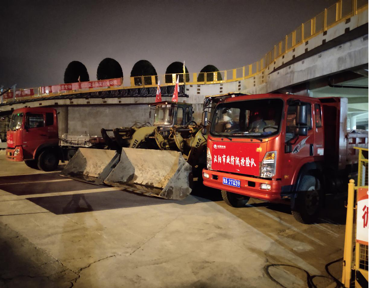 韓偉一行首先查看了長江的汛情和月亮灣項目部的防汛準(zhǔn)備工作。月亮灣項目地處臨江區(qū)域,屬月亮灣險灘,面臨著防汛搶險的嚴(yán)峻考驗。因此,在汛情前期,項目部就做好充分準(zhǔn)備,積極籌備鏟車2臺,拖車1臺,挖機2臺及10余類防汛器械,確保防汛物資充足;并確立了項目領(lǐng)導(dǎo)帶班值守巡查制度,組織25人成立應(yīng)急搶險小組,24小時輪流駐守在防汛應(yīng)急值守點。同時,項目部還暫?,F(xiàn)場部分基坑開挖和樁基施工工序,在保證不影響施工進(jìn)度的情況下,以萬全的準(zhǔn)備應(yīng)對汛期的到來。韓偉檢查了一工區(qū)的防汛應(yīng)急值守點,查看了倉庫中的各類防汛物資及設(shè)備,了解了項目上的值班制度、值守人員巡視職責(zé)、搶險應(yīng)急方案等。