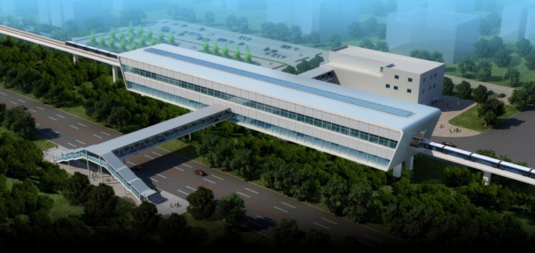 武漢市軌道交通21號線一期工程新榮站、施崗站土建工程(第二標段),施工范圍為施崗站車站主體結(jié)構(gòu)、人行天橋及附屬用房工程。車站主體結(jié)構(gòu)為雙墩柱門式地面三層側(cè)式高架車站,地面一層為架空層,地面二層為站廳層,地面三層為站臺層,站臺層上面設鋼結(jié)構(gòu)雨棚。工程于2014年12月26日開工,于2017年11月15日竣工,并被評為2016年武漢市建設工程安全文明施工示范項目。