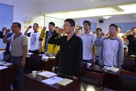 涂軼銘書記領(lǐng)頌了入黨誓詞。黨員同志們聲音洪亮,氣勢高亢,振奮有力。