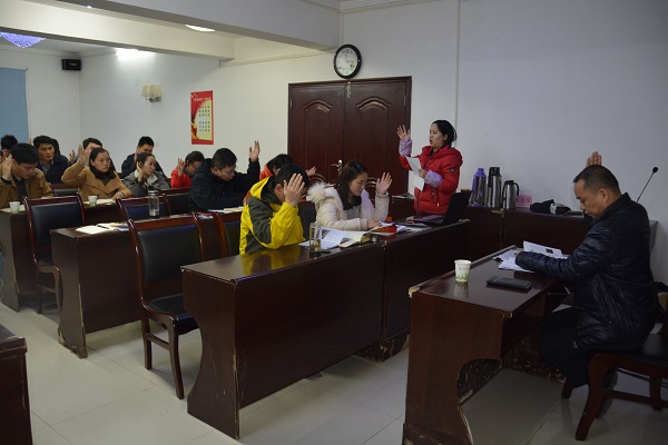 會(huì)議伊始,由涂軼銘書(shū)記通報(bào)到會(huì)情況,帶領(lǐng)大家高唱國(guó)歌,然后舉起右拳,重溫入黨誓詞;接著帶領(lǐng)大家學(xué)習(xí)《中共中央發(fā)出通知:部署黨的十九大代表選舉工作》、“九嚴(yán)禁”“九必須”換屆紀(jì)律以及市委關(guān)于推薦提名湖北省出席黨的十九大代表候選人工作有關(guān)精神的傳達(dá)學(xué)習(xí),以深化支部對(duì)換屆紀(jì)律的認(rèn)識(shí),著力營(yíng)造風(fēng)清氣正的選舉風(fēng)氣。在代表候選人推選環(huán)節(jié),黨員們積極行使選舉權(quán)利,紛紛舉手推薦人選,最后通過(guò)舉手表決的方式,推選出代表候選人人選?;顒?dòng)最后,涂書(shū)記通報(bào)了公司12月工程建設(shè)情況,向黨小組下發(fā)并帶領(lǐng)學(xué)習(xí)2017年第一期《鑫聲》期刊,對(duì)一年來(lái)的工作進(jìn)行總結(jié)。