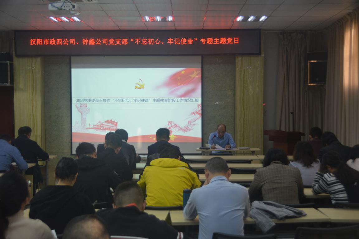 為進(jìn)一步深入開展“不忘初心,牢記使命”主題教育,總結(jié)公司主題教育活動進(jìn)展及成效,根據(jù)區(qū)委及集團(tuán)黨委主題教育工作安排,11月4日上午,鐘鑫市政在公司1號會議室召開11月支部主題黨日活動,活動邀請集團(tuán)黨委委員、統(tǒng)籌公司董事長王晟為全體黨員作了“不忘初心、牢記使命”主題教育學(xué)習(xí)情況報告,公司全體黨員參加了此次活動。