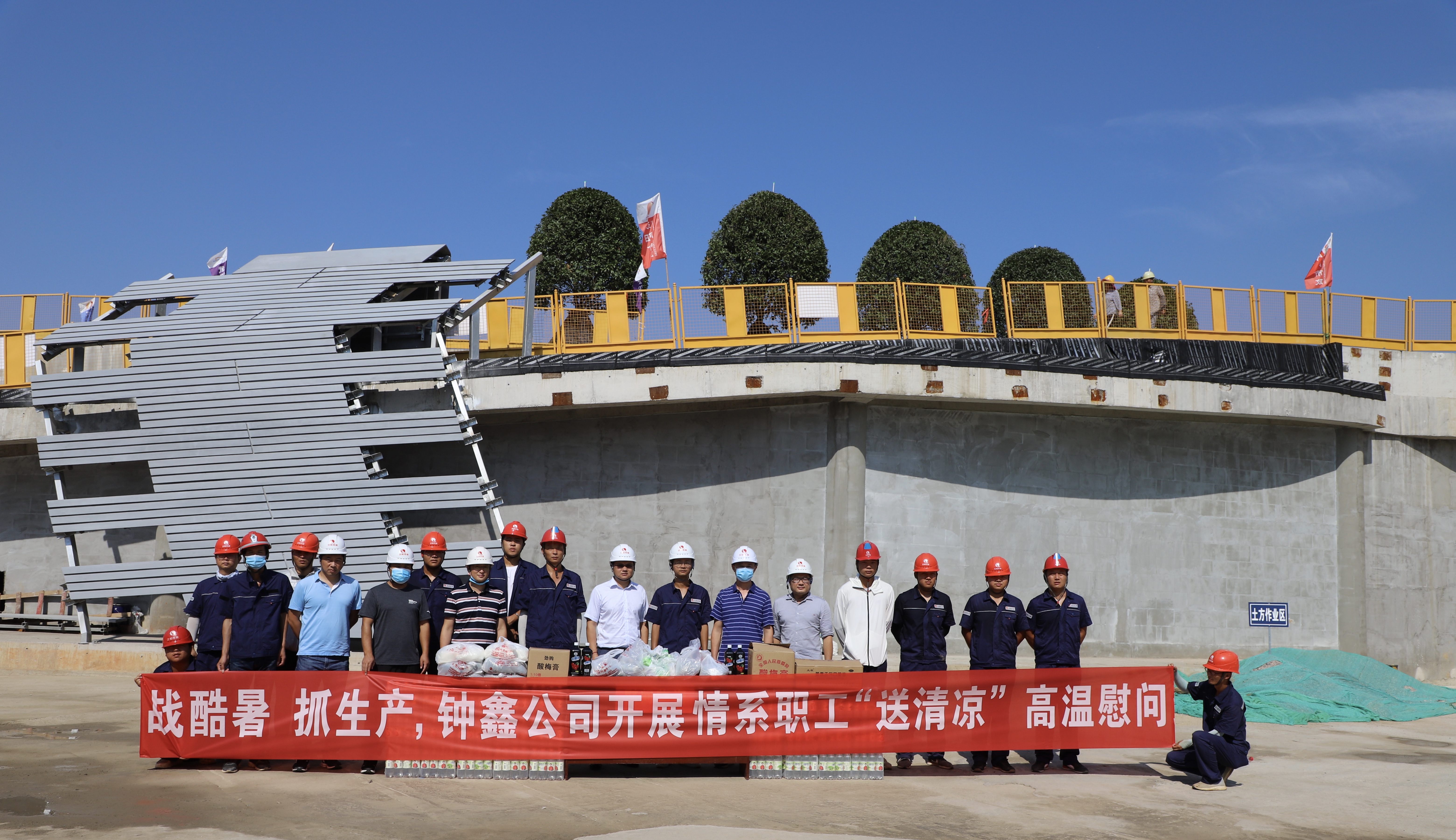 防汛工作剛結(jié)束,武漢又進(jìn)入持續(xù)高溫模式。近期,武漢氣溫連日高達(dá)37℃以上,但廣大一線施工人員仍夜以繼日?qǐng)?jiān)守崗位,爭(zhēng)分奪秒搶奪工期,全力以赴保障生產(chǎn)。8月18日上午,鐘鑫公司黨支部書記、董事長(zhǎng)陳俊俊帶隊(duì),赴月亮灣城市陽臺(tái)項(xiàng)目、地鐵5號(hào)線第7標(biāo)段土建工程項(xiàng)目、地鐵19號(hào)線第5標(biāo)段土建工程項(xiàng)目等六個(gè)項(xiàng)目,關(guān)心慰問堅(jiān)守崗位的一線施工人員,為他們送去一份清涼。