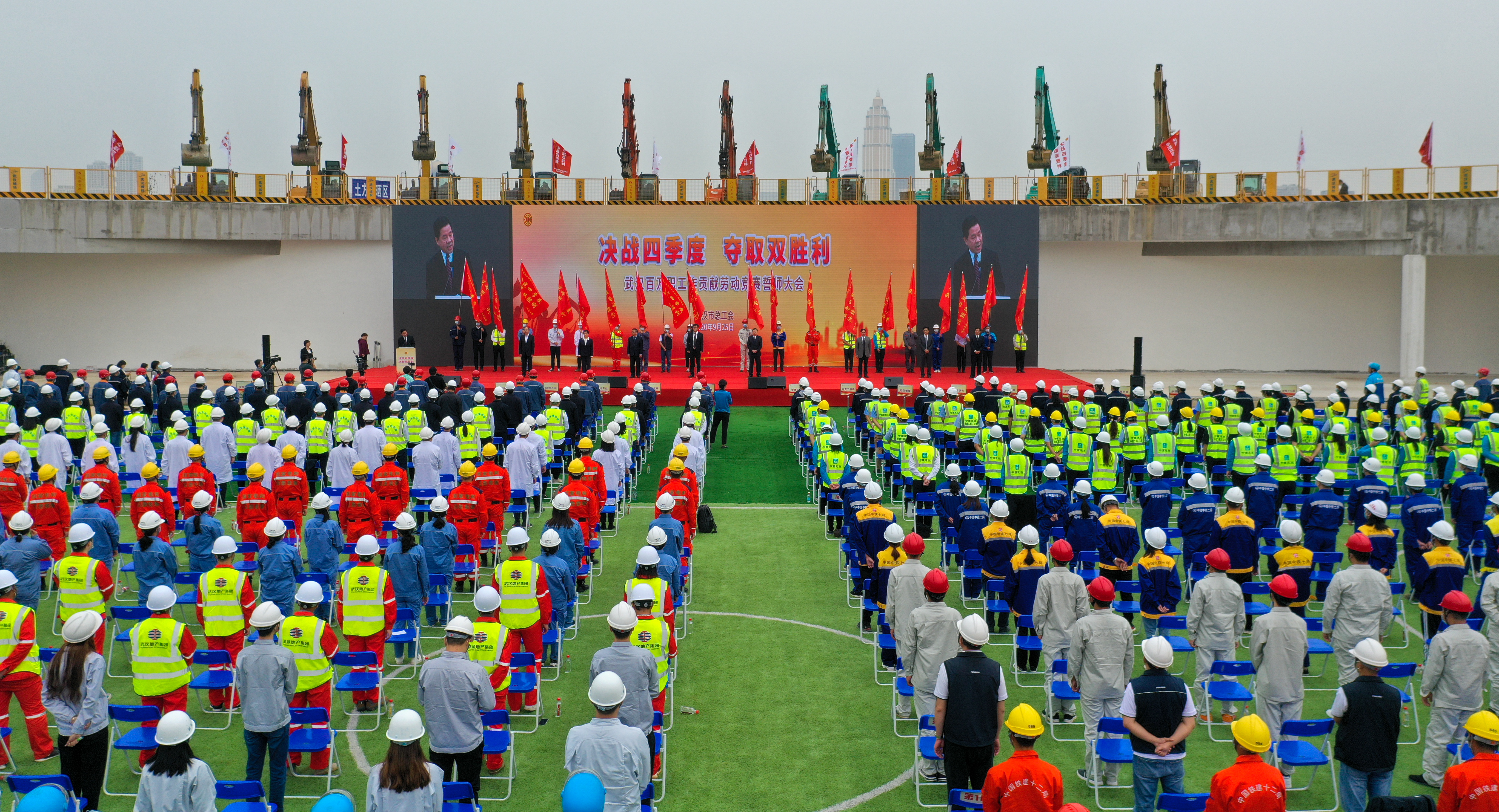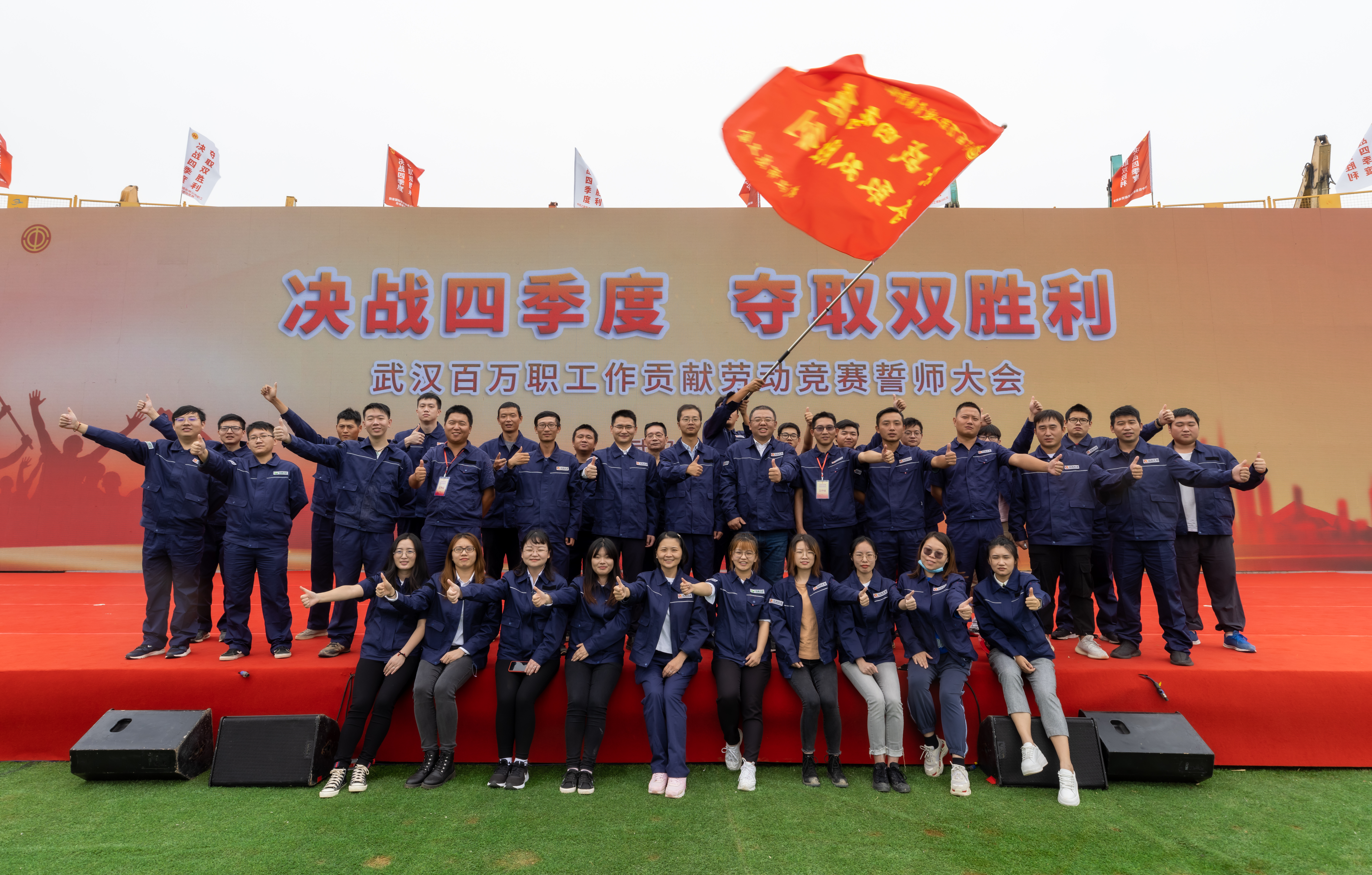 武漢,曾是新冠肺炎疫情的“風(fēng)暴眼”,如今成為中國經(jīng)濟(jì)疫后重振的風(fēng)向標(biāo)。在全市深入貫徹學(xué)習(xí)習(xí)近平總書記在全國抗擊新冠肺炎疫情表彰大會上的重要精神講話,大力弘揚偉大抗疫精神,奮力打造“疫后重振武漢樣板”的關(guān)鍵時刻,9月25日上午,以“決戰(zhàn)四季度、奪取雙勝利、武漢百萬職工作貢獻(xiàn)”為主題的勞動競賽誓師大會在全市重點工程工地——漢陽市政月亮灣城市陽臺項目隆重舉行,以建筑行業(yè)為代表的20余個行業(yè),190家單位,700余名一線建筑勞動者齊聚大會現(xiàn)場,共同見證武漢復(fù)工復(fù)產(chǎn)后大干快趕、比拼趕超勞動盛況。