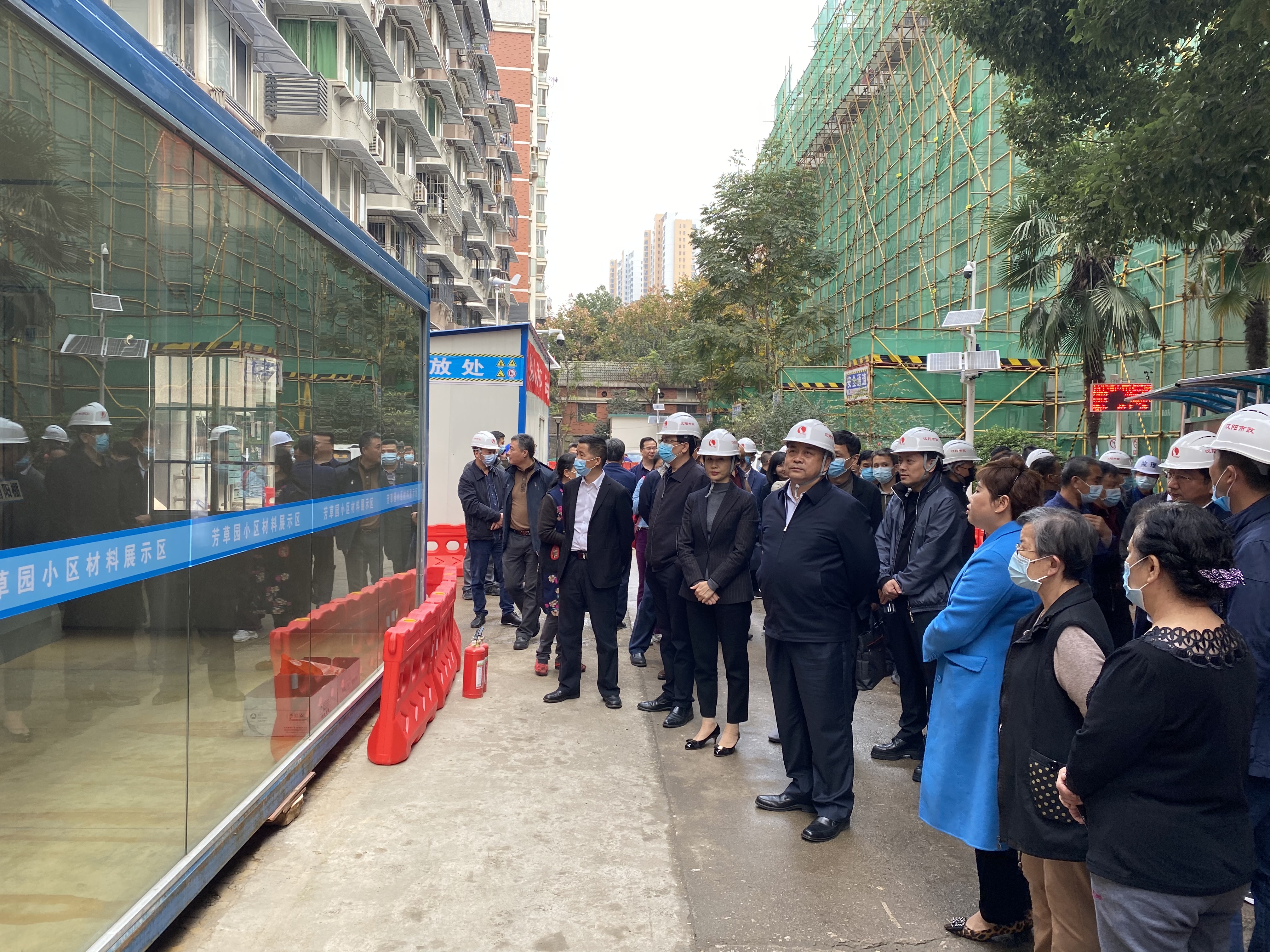 為深入貫徹中央、省、市有關老舊小區(qū)改造工作的決策部署,全面推進2020年老舊小區(qū)改造任務,11月16日下午,武漢市副市長張文彤,漢陽區(qū)委書記徐麗,區(qū)委副書記、區(qū)政府代區(qū)長范禮奎一行赴漢陽市政鐘鑫公司承建的漢陽區(qū)老舊小區(qū)改造(二期)工程芳草園小區(qū)現場,進行實地考察與觀摩,漢陽市政總經理虞志鵬、常務副總經理王智高、鐘鑫公司董事長陳俊俊陪同調研。