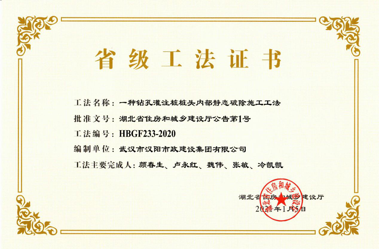 近日,湖北省住建廳傳來捷報,漢陽市政鐘鑫公司5項技術(shù)成果正式獲評為2020年度省級工法,標志著公司在技術(shù)革新方面又實現(xiàn)新的突破。本次獲評的5項省級工法技術(shù)均源自公司在建項目,多項科研成果得到科學驗證與廣泛應用,極大促進了公司先進技術(shù)經(jīng)驗的積累和推廣。