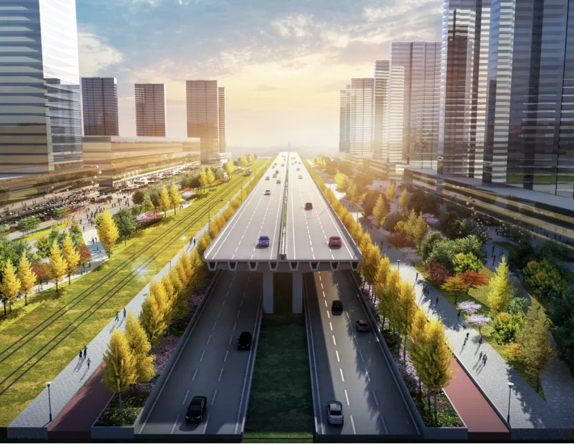 高新三路(三環(huán)線-外環(huán)線)改造提升工程屬于東湖高新區(qū)新“三線一點(diǎn)”重大戰(zhàn)略工程之一,全長(zhǎng)10.72KM,西起三環(huán)線新武黃立交,東至外環(huán)線以西規(guī)劃新武東收費(fèi)站,主線為高架,地面為輔路,均為雙向6車(chē)道,道路等級(jí)定位為城市快速路。該工程采用全線統(tǒng)一協(xié)調(diào)、分標(biāo)段施工的辦法,在保證工程各階段施工質(zhì)量的前提下,高效率完成整個(gè)工程,計(jì)劃于2023年建成并投入使用。