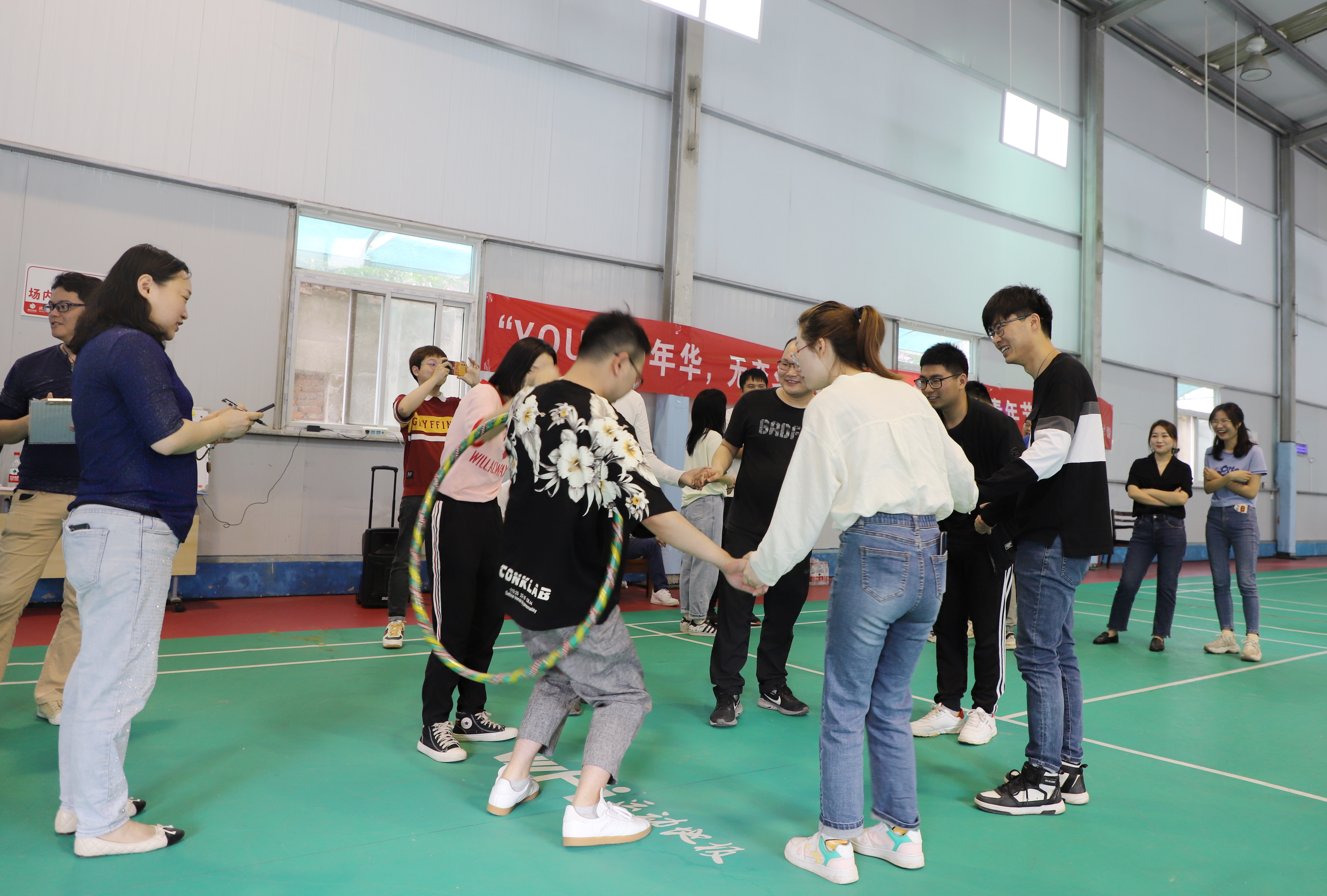 看似簡單的小游戲,考驗(yàn)的是速度和配合度,大家爭分奪秒,使出渾身解數(shù)贏得分?jǐn)?shù)。“一往無前”環(huán)節(jié)中“一圈到底”雖作為首個(gè)比賽項(xiàng)目,但每個(gè)小組渾身上下已燃起“必勝”的火焰,個(gè)個(gè)卯足了勁,以最快速度進(jìn)行接力競速,在齊心協(xié)力地配合下,每個(gè)小組都在最短的時(shí)間內(nèi)完成呼啦圈傳送。